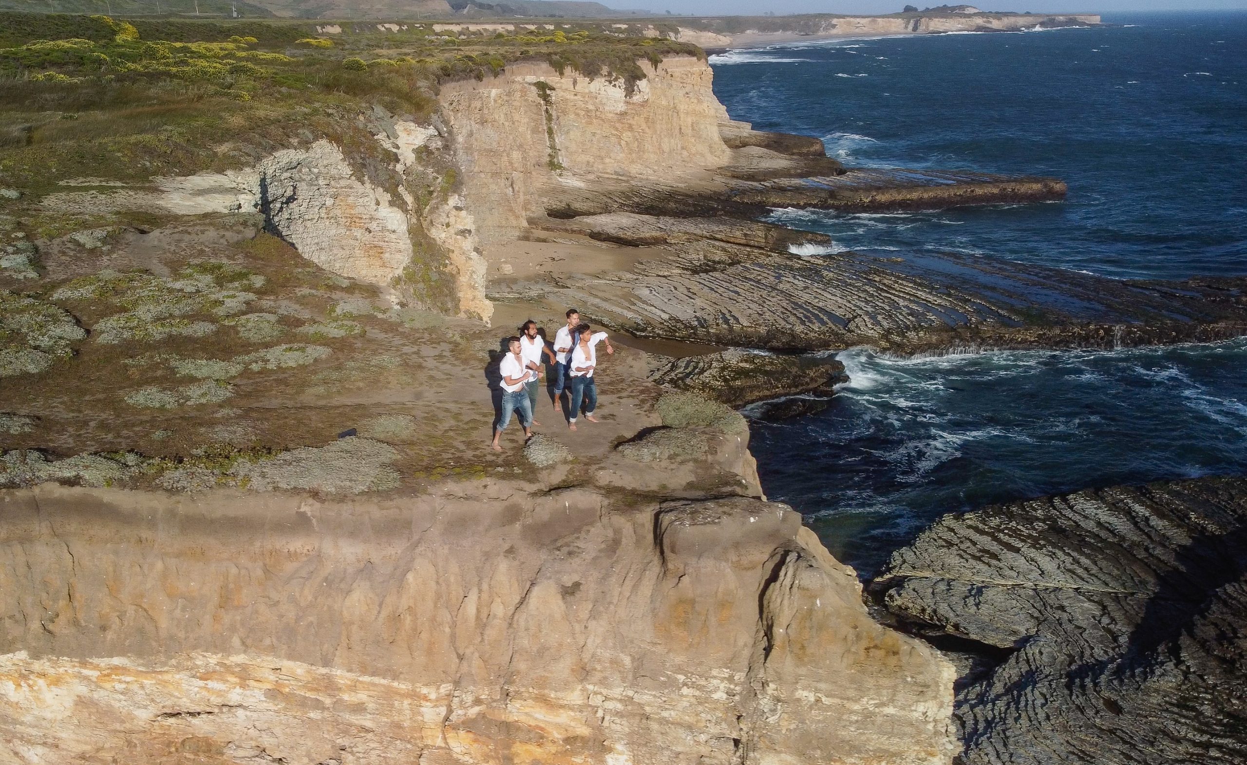 Danseurs de l’équipe de danse salsa de SJSU, Mambo Spartiate, dansant sur une falaise près du Coast Dairies park à Santa Cruz, en Californie. Tourné avec le DJI Mavic Mini 2.