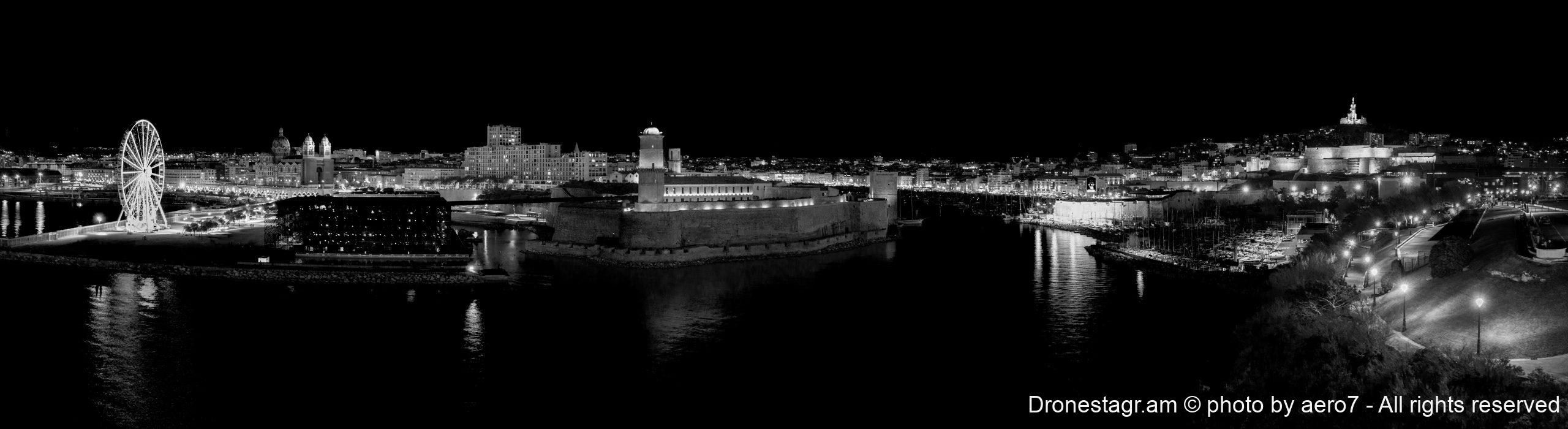 Marseille, France, la nuit, Photo panoramique Article réalisé à partir des informations publiées sur Dronestagr.am