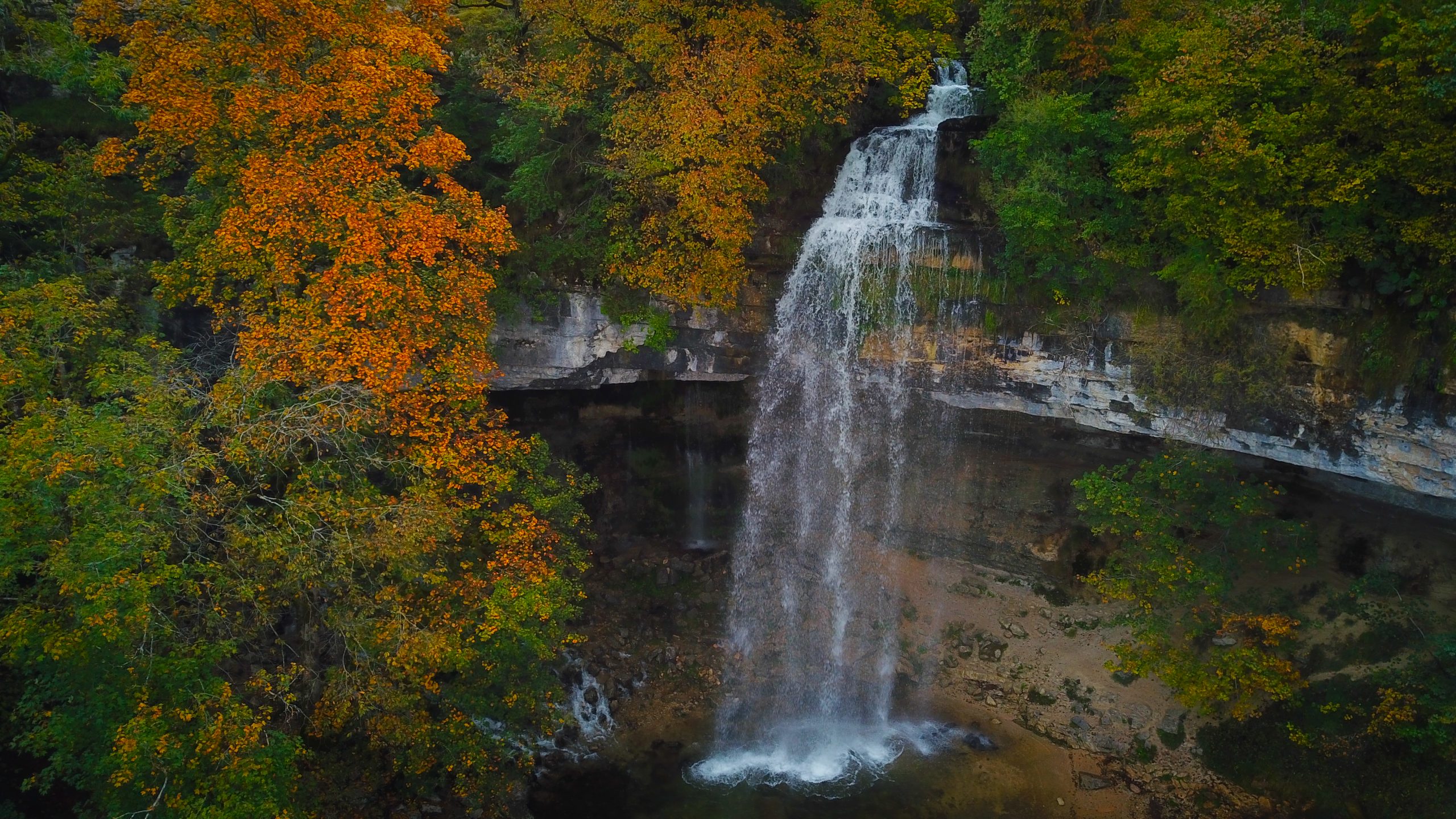 Prise de vue aux cascades “Saut Girard" du Herisson revier (Jura). La première cascade le long de la rivière Herisson qui en compte près de 10 sur un tronçon de 2 km de long. Un endroit à voir absolument après de fortes pluies. Un endroit parfait en automne ou au printemps.
